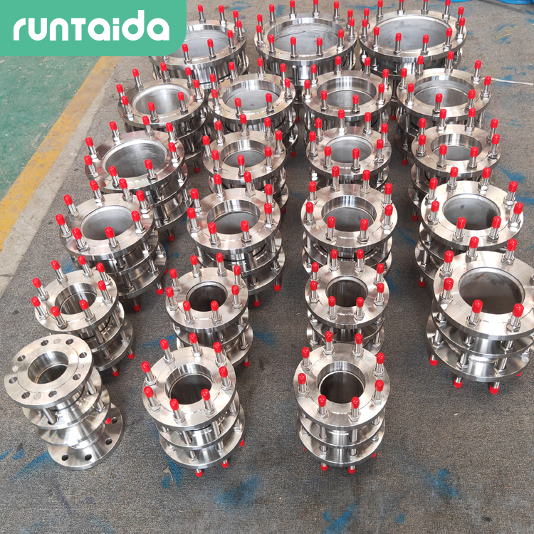 雙法蘭傳力接頭適用于兩邊均與法蘭連接的管道中,安裝時調節產品兩端與法蘭的安裝長度,對角集資均勻擰緊壓蓋螺栓,使其成為以整體,并有一定的位移量,傳力接頭主要依靠球體的角位移來吸收或補償管道一個或多個方向上的橫向位移,該補償器應成對使用,單只球形補償器沒有補償能力,可作管道萬向接頭使用。相信大家對伸縮接頭和傳力接頭都有一定的了解,這兩種產品都是管道補償,保護泵和閥門的接頭,伸縮接頭是泵、閥門,管道等設備與管道連接的,通過螺栓把它們連接起來,使其成為整體,并有一定的位移量,這樣可以針對管道由于熱應力或者是其他應力造成的軸向位移進行的位移補償,后者則是針對管道運行過程中由于管道的局部振動較大,通過加裝傳力接頭能夠將振動發推至整個管道,從而起到平衡壓力的效果,傳力接頭通過螺栓把它們連接起來,使其成為整體,并有一定的調節量,這樣可以在安裝維修時,根據現場安裝尺寸進行調整,在工作時,可以把軸向推力傳至整個管道系統。這樣不僅提升工作效率,而且對泵、閥門等管道設備起到一定保護作用。所以說傳力接頭沒有伸縮量,它只有安裝前的調節量。